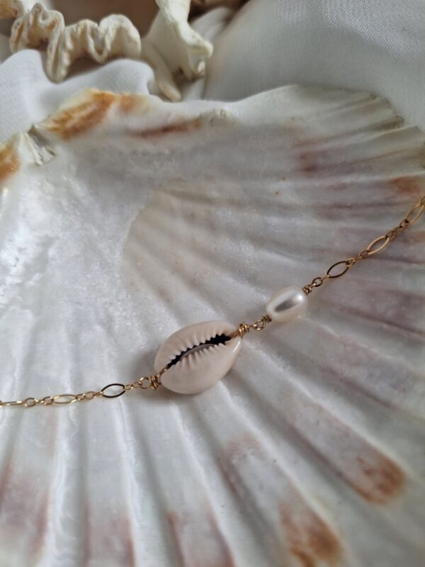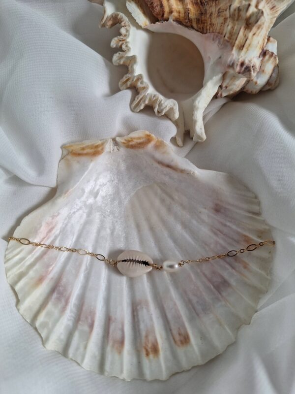 Ce duo « coquillage & perle », c’est juste trop « beauty » ! Pour une jolie finition à votre poignet, une mini perle d’eau douce est fixée à la chainette d’extension.