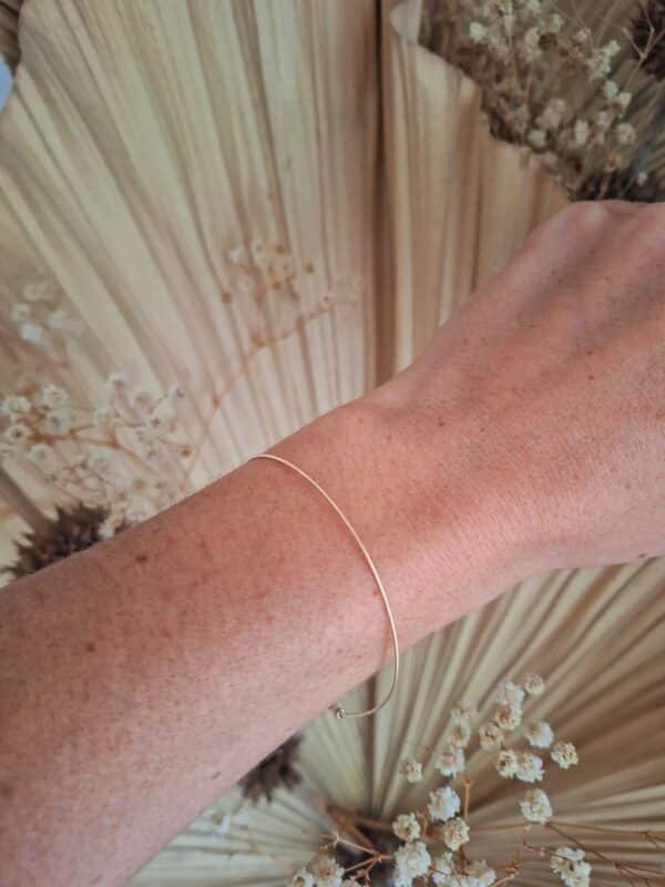 Ce bracelet Jonc « minimaliste & chic », se porte seul ou en accumulation. Au fur et à mesure dans le temps, ce bracelet se déformera légèrement, ce qui donnera du charme à votre bijou. Pour redonner une forme arrondie au bracelet, faites une légère pression sur le fil à l’aide de vos doigts sur un objet arrondi.